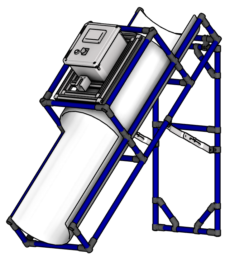 Our Chicken Counters are built with a 16" diameter, plastic pipe, and sturdy framing to adjust to a 45-degree angle.